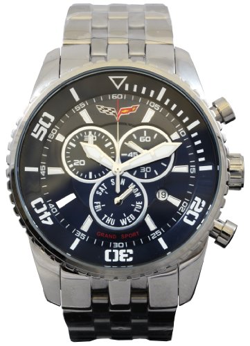 Corvette CR215-Blu is a Men's stylish Racing Watch. This stunning Corvette watch comes with shiny and solid stainless steel case and bracelet with deployment buckle clasp. It also features high quality Swiss movement, scratch resistant mineral crystal, water resistant to 50 meters and an attractive blue dial with chronographs, day display subdial, date display at 4 and luminous hands and hour markers. Corvette CR215-Blu is backed a 5 year factory warranty.